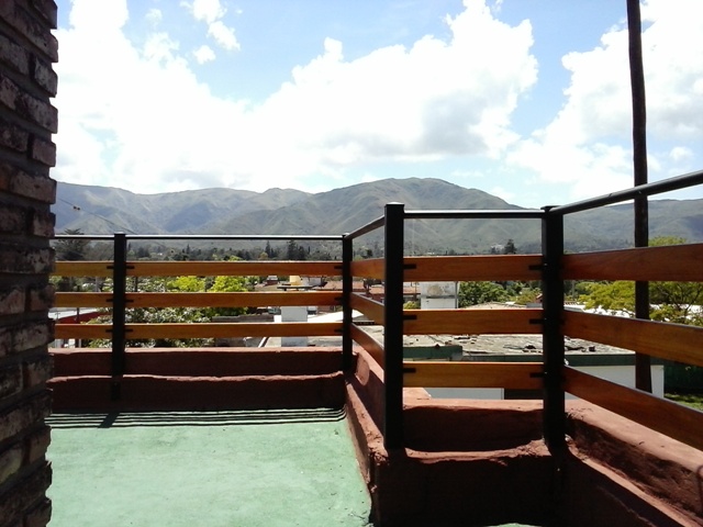Departamento muy luminoso con hermosa vista a las sierras, con capacidad para 4/5 personas, dos dormitorios, comedor con un sofá cama, kitchen , terraza y patio interno con asador, vajilla completa, tv. con cable, wi.fi, ventilador de techo, microondas, termotanque, lugar techado para auto, pileta, estamos a media cuadra de la ruta nacional 38, a 6 del centro y a un km. del complejo 7 cascada